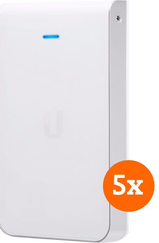 Voorzie een restaurant of een kantoor van 5 compacte wifi punten met het Ubiquiti UniFi AP AC In-Wall HD 5-pack access points. Doordat je deze kleine access points plat aan de muur bevestigt, zijn deze erg onopvallend. Het access point heeft 4 ingebouwde netwerkaansluitingen, waardoor je ook bedrade netwerkapparaten verbindt. Koppel de UniFi access points aan elkaar en creëer zo een groter wifi netwerk. Doordat je tot 256 wifi punten aan elkaar koppelt, heb je zelfs in een groot kantoor of hotel een stabiel wifi netwerk. Je beheert deze via de UniFi Controller, waardoor je instellingen voor alle access points aanpast vanuit dezelfde software. De access points zijn geschikt voor stroom via de netwerkkabel. Zo heb je geen vrij stopcontact nodig op de plek waar je deze installeert.