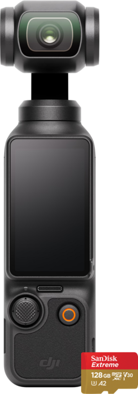 De DJI Osmo Pocket 3 + 128 GB SD kaart is een handige set voor enthousiaste videomakers. Je ontvangt een 128 GB micro SD kaart. Hierop bewaar je een aantal uur aan videobeelden. Stop de geheugenkaart in de DJI Osmo Pocket 3 en begin meteen met filmen. De action camera heeft een ingebouwde gimbal, waardoor je vloeiende video’s opneemt. Als je met de camera rondloopt, zie je geen trillingen in beeld. Dankzij de relatief grote 1 inch beeldsensor maak je heldere beelden bij weinig licht, bijvoorbeeld in de schemering. De camera heeft een draaibaar touchscreen. Je kiest tussen verticale en horizontale opnames en draait het scherm 90 graden mee. Zo bepaal je gemakkelijk je kader tijdens een opname.