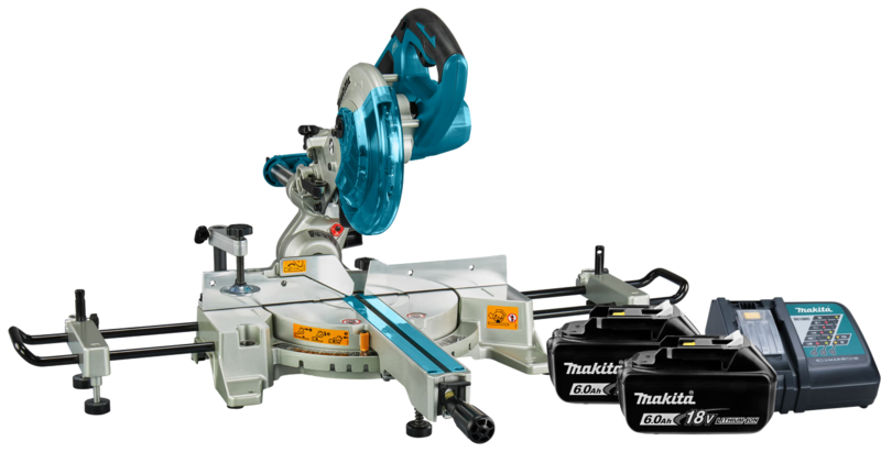 Bij deze versie van de Makita DLS714NZ krijg je ook 2 accu’s en een oplader meegeleverd. Zo ga je direct aan de slag met verschillende zaagklussen. Zaag planken tot 300 millimeter breed en 52 millimeter diep. Ook als je schuin (in verstek) zaagt, zaag je tot 52 millimeter hoog. Kantel de zaagkop naar links of rechts en voer alle mogelijke versteksneden uit zonder dat je jouw werkstuk draait. Door de tafelverbreding liggen lange werkstukken altijd stevig. Ook gaat de afkortzaag langer mee door de koolborstelloze motor. De DLS714NZ + 6,0 Ah accu (2x) en lader is onderdeel van het Makita LXT 18V accu platform. Je gebruikt de accu’s dus ook op ander (tuin)gereedschap van hetzelfde platform.