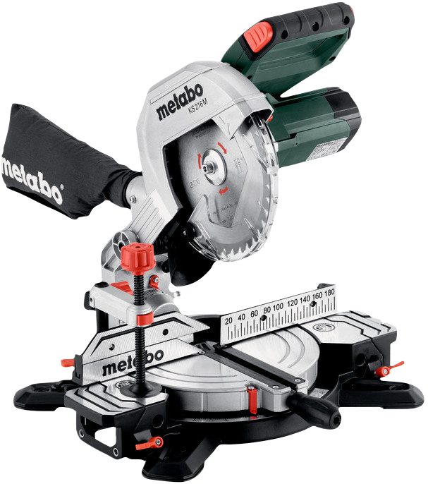 Met de 1350 watt Metabo KS 216 M zaag je precies in hout, houtpanelen en MDF-platen. Dankzij de uittrekbare tafelverbredingen leg je werkstukken stabiel neer. Heb je meer ruimte nodig? Dan maak je de tafelverbredingen juist los. Het 216 millimeter grote zaagblad laat je precies zakken op de schaduwlijn, zodat je altijd recht zaagt. De zaagdieptebegrenzer zorgt ervoor dat je altijd op de juiste diepte zaagt. Hierdoor maak je ook groeven in plaats van dat je de plank helemaal doorzaagt. In verstek zaag je met de KS 216M tot 47 graden naar links. Hierbij zijn er voor de meest voorkomende hoekmaten 5 vaste punten.
