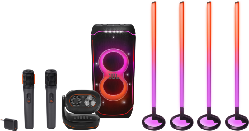 Het JBL Partybox Ultimate Karaoke pakket Middel zorgt voor een sfeervolle kamer. De microfoons zijn draadloos en gebruik je tot 30 meter van de speaker. Hierdoor hebben jij en je vrienden alle bewegingsvrijheid tijdens het zingen. Het licht van de JBL Parytlight Beam pas je aan in de JBL Partybox app. Je past de snelheid, kleur en het patroon aan, waardoor je voor de juiste sfeer kiest. De 4 Partylight Stick lampen hebben een 360 graden ontwerp. Als je ze op verschillende plekken in de kamer zet, verlicht je de hele ruimte. De speaker werkt op netstroom, waardoor je zo lang als je wil naar muziek luistert.