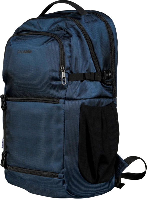 Je neemt jouw camera en accessoires veilig mee op pad met de Pacsafe Camsafe X25L Econyl Blauw. In de rugzak is plek voor een systeem- of spiegelreflexcamera met 3 tot 4 lenzen. De tas heeft verschillende zijvakjes voor kleine accessoires, zoals een batterij of geheugenkaart. De speciale anti-diefstal technologie verkleint de kans op diefstal van jouw tas. Zo klik je de schouderband veilig om een tafelpoot heen. In een druk café neemt niemand jouw tas mee. Je neemt je waardevolle spullen met een veilig gevoel mee. Met een haakje vergrendel je de rits van de rugzak, waardoor zakkenrollers hem minder makkelijk openen. In slecht weer bescherm je jouw apparatuur met de meegeleverde regenhoes. Zo blijven je spullen droog.