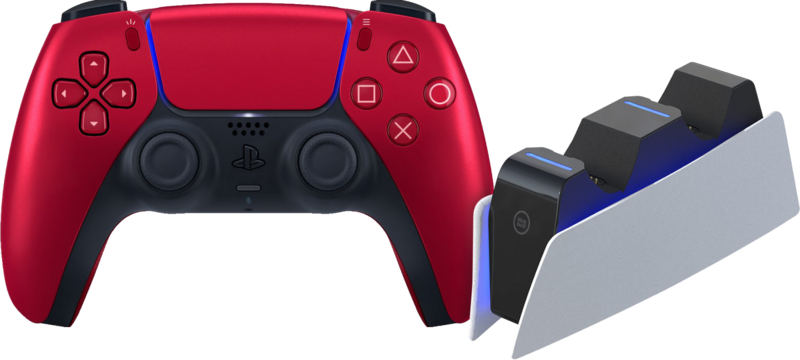 Met deze Sony PlayStation 5 DualSense draadloze controller Volcanic Red + BlueBuilt oplaadstation bundel laad je tot 2 controllers tegelijk op. Zo speel je altijd met een volle accu en game je draadloos. Wil je controllers opladen terwijl je PS5 niet aan staat? Dan heb je een oplader adapter met usb A aansluiting nodig. De DualSense controller heeft haptische feedback, waardoor je bijvoorbeeld voelt wanneer je door de grindbak rijdt in een race game. Ook heeft de controller dynamische trigger effecten, triggers met weerstand die zich aanpassen aan de game die je speelt. Wanneer je een boog spant om een pijl te schieten, voel je dat de spanning op je vingers opbouwt.
