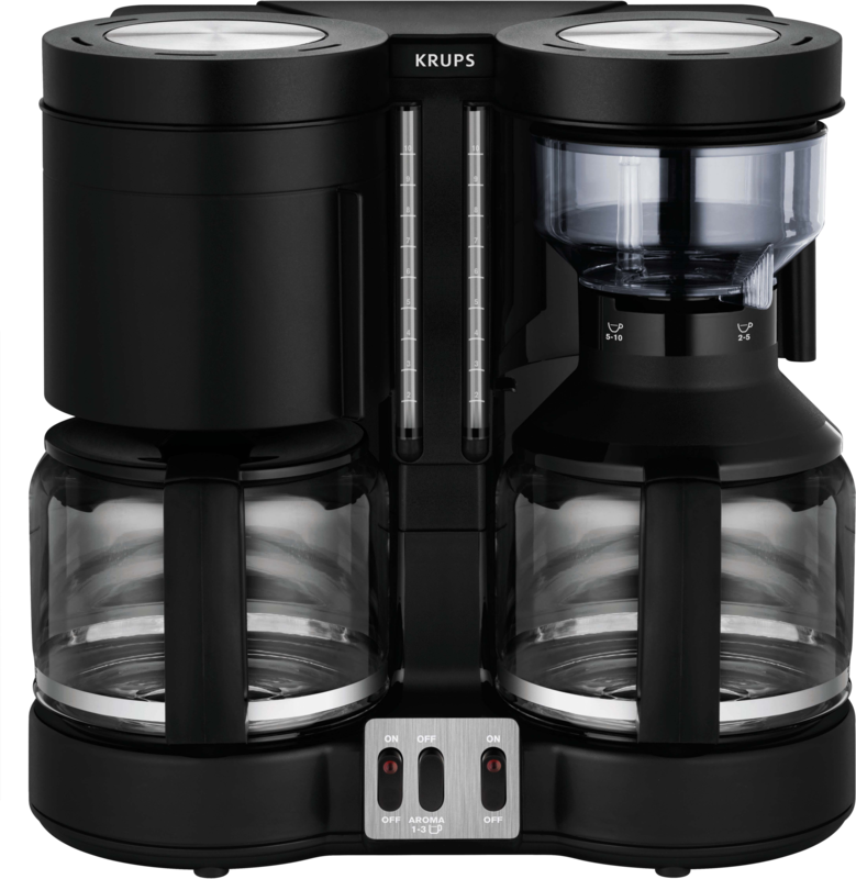 Wanneer je een grote hoeveelheid koffie in één keer wilt zetten, is de Krups Dubbel KM8508 voor jou. Het koffiezetapparaat heeft namelijk 2 koffiefilters in één apparaat. Zo zet je met gemak 20 kopjes van 120 milliliter koffie in één keer met de 2 kannen. Handig, voor op een verjaardag als je een grote familie hebt of voor op kantoor als je vaak grote groepen ontvangt. Zijn er ook liefhebbers voor thee? Geen probleem dan zet je 1 kan koffie en 1 kan thee. Bij het koffiezetapparaat krijg je namelijk een apart filter waarmee je thee kan zetten. Ook zijn de kannen afzonderlijk te gebruiken, mocht je een keer wat minder bezoek hebben.