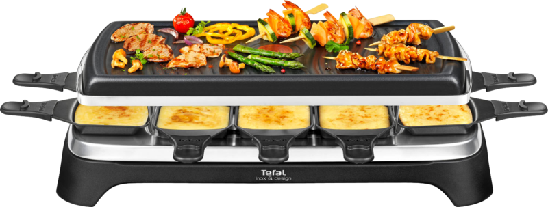 Met de Tefal Gourmet 10 Inox & Design RE4588 gourmet je tot 10 personen. Dankzij het hoge vermogen van 1.350 watt is het gourmetstel snel opgewarmd. De Tefal Thermo Signal-stip kleurt effen rood wanneer hij op temperatuur is. Handig, want zo weet je precies wanneer je de ingrediënten op de grillplaat legt. Verder gebruik je het gourmetstel tegelijkertijd ook als raclette. Zo smelt je in het pannetje een plakje kaas voor bijvoorbeeld je cheeseburger. Na gebruik was je de plaat met de hand af. Het netsnoer koppel je los van de grill, zodat je `m gemakkelijk opbergt in je keukenkastje.