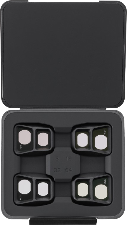 Met de DJI Air 3 ND Filters Set (ND8/16/32/64) grijsfilters houd je 3, 4, 5 of 6 stops licht tegen. Zo voorkom je overbelichte opnamen van je DJI Air 3. Grijsfilters verminderen de hoeveelheid licht die je lens binnenvalt, waardoor je langzamere sluitertijden gebruikt. Dat is handig als je op zonnige dagen of tijdens de wintersport filmt. Je klikt deze filters eenvoudig op de camera van de drone, waardoor ze tijdens het vliegen stevig vastzitten.
