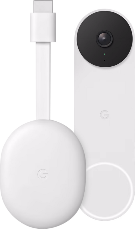 Zie op je televisie wat er voor je deur gebeurt met de Google Chromecast 4K met Google TV + Google Nest Doorbell. Installeer de Nest Doorbell bedraad of draadloos om zo meldingen te krijgen van mensen voor je deur. Als je al tv keek, krijg je ook een melding op je televisie. Je ziet dan gelijk op tv wie er voor je deur staat en je praat met je gast door de afstandsbediening van je Chromecast. De Chromecast zorgt voor het Google TV smart systeem, zo zie je al je favoriete series en films op je televisie.