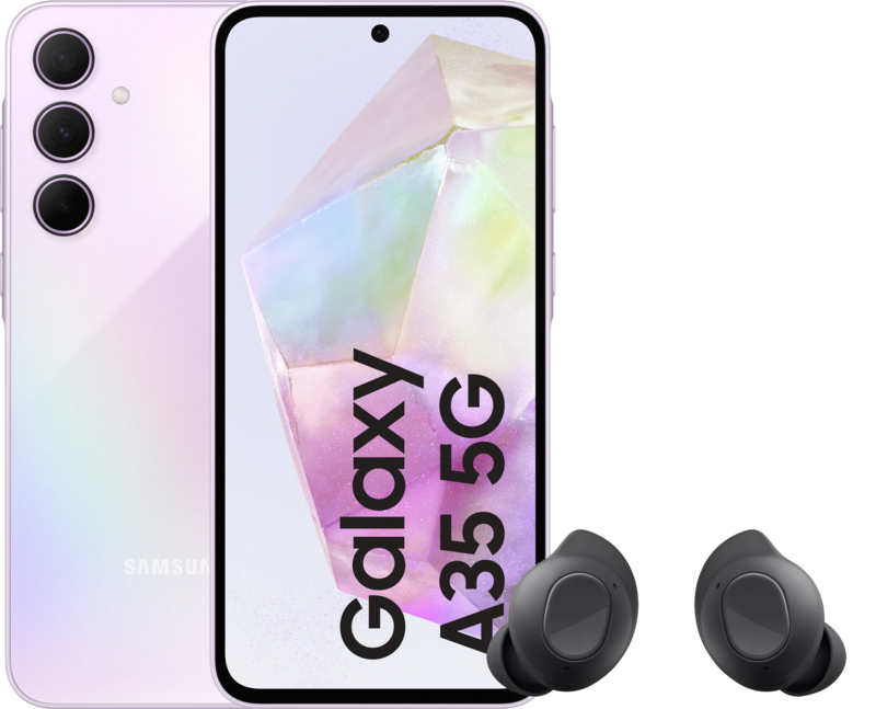 Met de Samsung Galaxy Buds FE Zwart luister je naar je favoriete muziek en podcasts op je Samsung Galaxy A35 128GB Paars 5G. Dankzij noise cancelling sluit je je af van omgevingsgeluid. De A35 is een middenklasse smartphone waar je scherpe foto’s mee maakt. Op de achterkant vind je een standaard-, groothoek- en een macrolens. Je bewaart je foto’s, apps en andere bestanden op het 128 GB opslaggeheugen. Wil je niet om de zoveel tijd het geheugen opruimen? Ga dan voor de 256 GB variant van de A35. Op het 6,6 inch full hd scherm van de Samsung A35 kijk je naar series op Netflix of video’s op YouTube. Wel bedien je het scherm door zijn formaat moeilijk met één hand. De Samsung A35 is geschikt voor lichte spellen en apps zoals Instagram. Dankzij de grote 5.000 mAh batterij gaat de Galaxy A35 bij gemiddeld gebruik een hele dag mee.