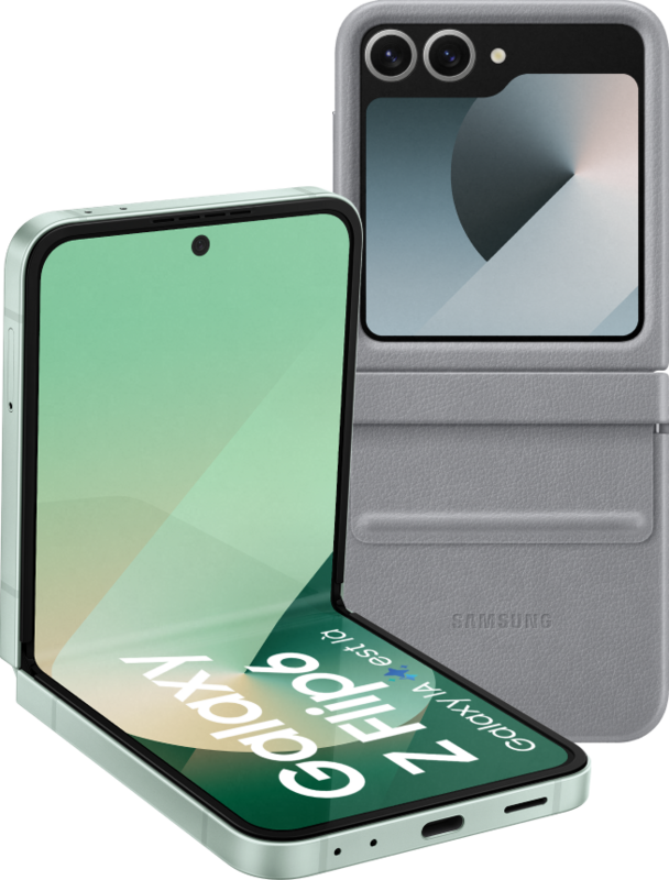 Bescherm je Samsung Galaxy Z Flip 6 512GB Mint 5G tegen schade met de meegeleverde Samsung Back Cover Kunstleer Grijs. De Samsung Flip 6 is een vouwbare smartphone. Opengeklapt gebruik je het 6,7 inch full hd scherm van de Samsung Flip 6 als normale smartphone. Als je de Flip 6 dichtklapt, bekijk je op het compacte 3,4 inch scherm aan de buitenkant je meldingen of verstuur je berichten. De Samsung Flip 6 is geschikt voor de zwaarste taken. Je speelt bijvoorbeeld 3D games of bewerkt foto’s en video’s met Galaxy AI. Aan de achterkant van de Flip vind je 2 camera’s waar je haarscherpe foto’s mee maakt. De 4.000 mAh batterij is aan de kleine kant, dus je moet deze Samsung smartphone soms gedurende de dag opladen. Op het 512 GB opslaggeheugen van de Samsung Flip 6 is ruimte voor je apps, foto’s en series en films.