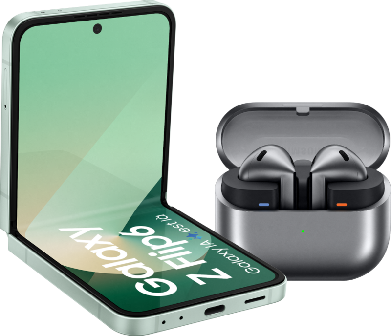 Luister via je Samsung Galaxy Z Flip 6 512GB Mint 5G naar je favoriete muziek en podcasts met de Samsung Galaxy Buds3. De Samsung Flip 6 is een vouwbare smartphone. Opengeklapt gebruik je het 6,7 inch full hd scherm van de Samsung Flip 6 als normale smartphone. Als je de Flip 6 dichtklapt, bekijk je op het compacte 3,4 inch scherm aan de buitenkant je meldingen of verstuur je berichten. De Samsung Flip 6 is geschikt voor de zwaarste taken. Je speelt bijvoorbeeld 3D games of bewerkt foto’s en video’s met Galaxy AI. Aan de achterkant van de Flip vind je 2 camera’s waar je haarscherpe foto’s mee maakt. De 4.000 mAh batterij is aan de kleine kant, dus je moet deze Samsung smartphone soms gedurende de dag opladen. Op het 512 GB opslaggeheugen van de Samsung Flip 6 is ruimte voor je apps, foto’s en series en films.