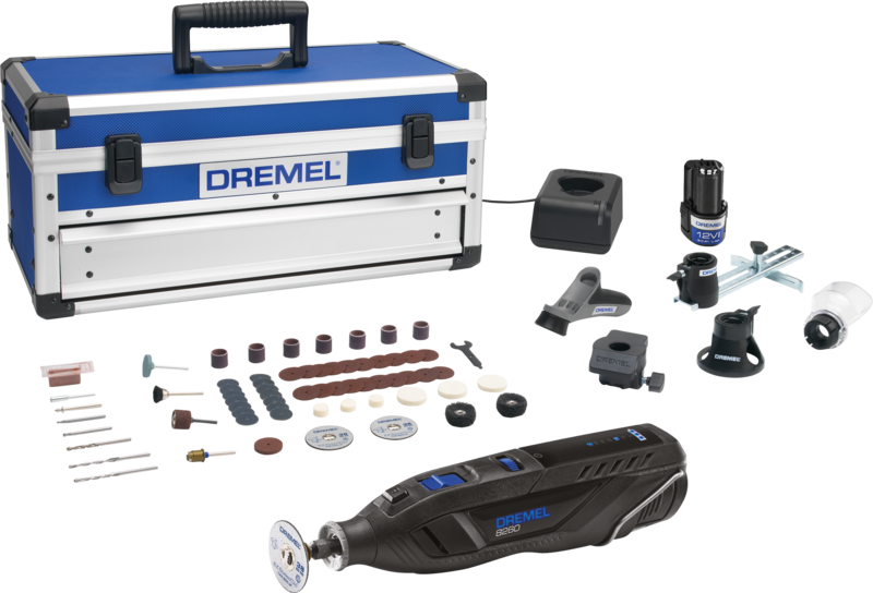 Accessoires:1 x Graveerfrees 2,4 mm (107), 1 x Hogesnelheidsfrees (191), 1 x Siliciumcarbide slijpsteen 19,8 mm (85422), 1 x Aluminiumoxide slijpsteen 9,5 mm (932), 1 x Aluminiumoxide schuurschijf (541), 3 x Polijstschijf 13 mm (414), 3 x Polijstschijf 26 mm (429), 1 x Draadborstel 13,0 mm (404), 1 x Polijstpasta (421), 2 x EZ SpeedClic metalen snijschijven (SC456-1), 20 x Snijschijf voor zwaar gebruik 24 mm (420), 1 x Spiraalfrees (560), 1 x Multifunctionele spiraalfreesmessen (561), 1 x Schuurband en opspandoorn 13 mm korrelgrootte 60