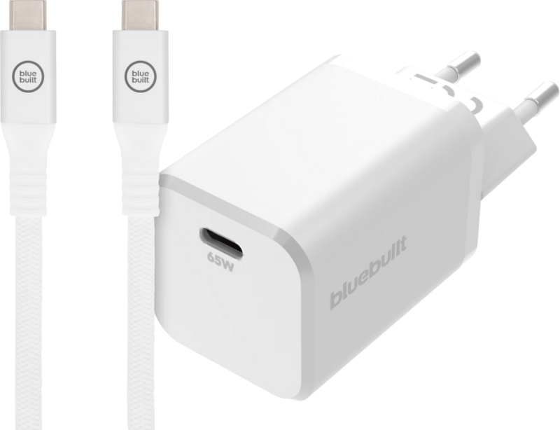 Met de BlueBuilt Power Delivery Universele Oplader 65W + usb C oplaadkabel (2m) Wit laad je meteen jouw laptop op en werk je gerust verder. De krachtige oplader levert 65 watt vermogen, hiermee laad je de meeste laptops op. Het is een kleine oplader, waardoor je hem gemakkelijk meeneemt in je tas. De BlueBuilt oplader levert nooit meer vermogen dan je apparaat aan kan. De BlueBuilt Usb C naar usb C kabel 2m Nylon Wit heeft 2 usb C aansluitingen. De kabel levert 240 watt aan vermogen, dus je laadt hiermee met gemak een krachtige laptop op. Hij is gemaakt van nylon, waardoor hij langer meegaat dan een kunststof kabel. Met een kabellengte van 2 meter heb je net iets meer bewegingsvrijheid en hoef je niet direct naast een stopcontact te werken.