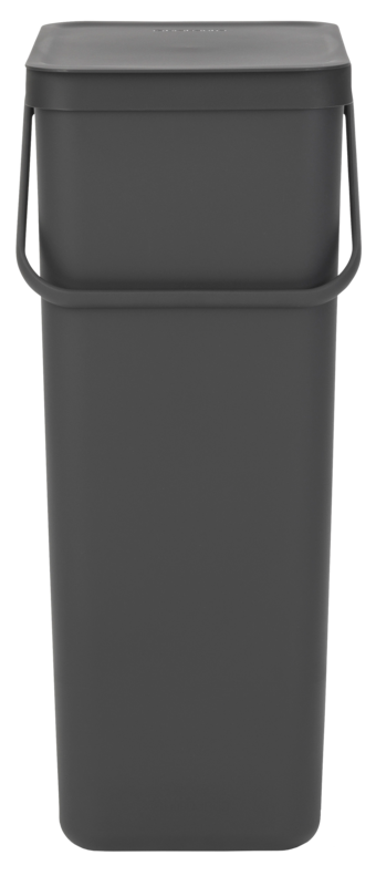 De Brabantia Sort & Go 40 Liter Dark Grey is ideaal voor het weggooien van restafval, papier, of plastic. Dankzij de rechthoekige vorm plaats je de prullenbak gemakkelijk tegen een muur. Zo neemt hij weinig ruimte in beslag en is de prullenbak geschikt voor in de keuken. De prullenbak heeft een inhoud van 40 liter. Dit is voldoende voor een huishouden van 3 tot 4 personen. Dankzij het grote handvat verplaats je de prullenbak gemakkelijk en gaat legen ook heel eenvoudig.