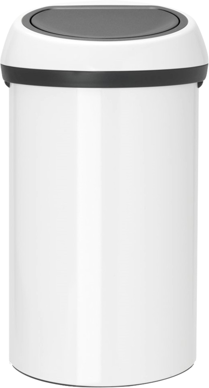 De Brabantia Touch Bin 60 Liter White is ideaal voor een huishouden van 5 tot 6 personen, dankzij de ruime inhoud van 60 liter. Door de grote opening gooi je afval gemakkelijk weg. Handig wanneer je bijvoorbeeld de etensresten vanaf je bord weggooit. Door het soft-touch systeem open je de deksel met een lichte aanraking. De deksel opent naar boven, zodat ‘ie niet in de weg zit als je afval weggooit. Dankzij de draaggrepen aan de achterkant verplaats je de prullenbak gemakkelijk. Zo zet je ‘m bijvoorbeeld even aan de kant tijdens het stofzuigen. De prullenbak heeft een kunststof bodemrand, zodat je de vloer niet beschadigt. Je gebruikt de Brabantia afvalzakken code H en de prullenbak is 72 cm hoog.