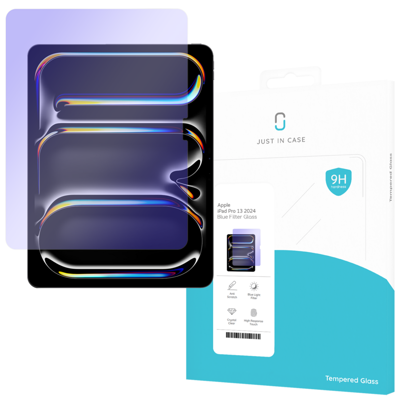 Bescherm je tabletscherm tegen krassen met de Just in Case Blauw Licht Filter Apple iPad Pro 13 inch (2024) Screenprotector Glas. De screenprotector filtert blauw licht zonder dat het je scherm een gelige gloed geeft. Hierdoor raken je ogen minder snel vermoeid. Zo bescherm je naast je scherm ook meteen je ogen. Je gebruikt het touchscreen van je iPad gewoon zoals je gewend bent. Een glazen screenprotector kan breken na een val, maar hij heeft dan wel het scherm van je tablet beschermd. Dankzij de anti-reflecterende laag op de screenprotector heb je minder last van schitteringen van de zon. Hierdoor gebruik je jouw iPad Air ook buiten in fel licht. De screenprotector is op maat gemaakt voor de Apple iPad Pro 13 inch (2024).