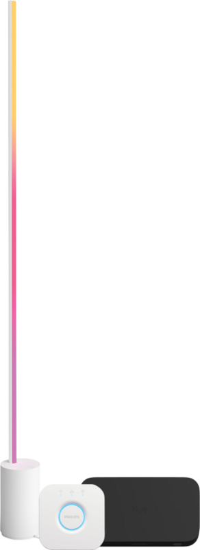 Met dit Philips Hue pakket laat jij je lampen meekleuren met je televisie. Op de Hue Sync Box sluit je al je apparaten aan, zoals de tv ontvanger en je Chromecast. De Sync Box vertaalt het beeld van je tv naar kleur, waardoor al je Philips Hue White and Color lampen meekleuren. De Hue Gradient Signe is hiervoor ideaal, omdat je hem op de vloer naast je tv plaatst. De Gradient Signe geeft ook meerdere kleuren licht tegelijk. De Bridge in dit pakket is nodig om je lampen en Sync Box draadloos van internet te voorzien. De Bridge koppel je met een ethernetkabel aan je router. Zonder Bridge laat je de lampen niet met je tv meekleuren.
