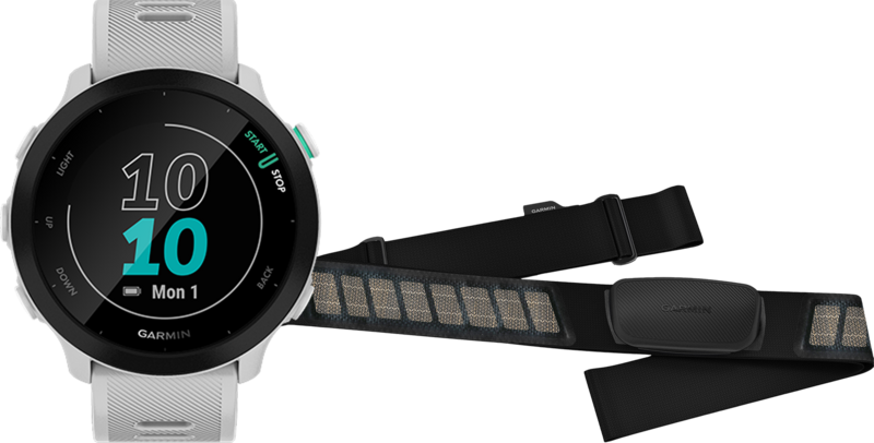 Krijg extra nauwkeurig inzicht in je hartslag tijdens het hardlopen met de Garmin Forerunner 55 Wit + Garmin HRM-DUAL Hartslagmeter Borstband Zwart bundel. Je leest de hartslaggegevens van de borstband af op je Forerunner horloge. Je ontvangt persoonlijke sportschema’s dankzij Garmin Coach. Op basis van jouw sportprestaties en sportdoelen past je Forerunner 55 de sportschema’s naar boven of beneden aan. Zo behaal jij jouw sportieve doelen op je eigen tempo. De Forerunner 55 laat je niet zomaar in de steek, want hij heeft een batterijduur van 14 dagen. Gebruik je continu gps? Dan houdt hij het 20 uur vol. Naast hardlooptrainingen houd je ook andere trainingen zoals HIIT bij op de Forerunner 55. Je meet ook andere gezondheidsgegevens met deze smartwatch, zoals je slaapscore, intensieve minuten en fitness leeftijd. De borstband van de hartslagmeter is geschikt voor een borstomtrek van 63,5 tot 132 centimeter.