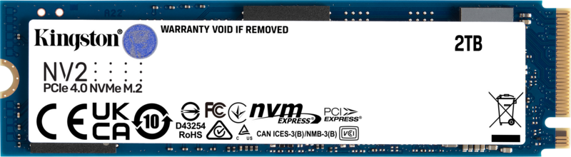 De Kingston NV2 PCIe 4.0 NVMe SSD 2TB is een snelle interne SSD, geschikt voor zowel laptops als desktops. Met 2 terabyte aan opslagruimte, sla je zo’n 200.000 foto’s of 200 uur aan full hd beeldmateriaal op. De SSD biedt niet alleen opslag voor al je foto’s en andere bestanden, maar laat je pc ook sneller opstarten. Zo ga je direct aan de slag. Met lees- en schrijfsnelheden van 3.500 en 2.800 MB/s is de Kingston NV2 M.2 een stuk sneller dan de NV1. Bovendien levert de SSD extra goede prestaties door de PCIe 4.0 interface. Hiermee zet je bestanden namelijk sneller over dan met PCIe 3.0. De NV2 verbruikt daarnaast minder energie en wordt minder warm. Hierdoor is de SSD relatief energiezuinig en houdt je laptop meer batterij over. Je krijgt van Kingston 3 jaar garantie op deze SSD.