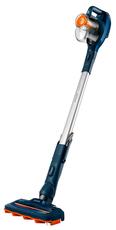 De Philips SpeedPro FC6724/01 heeft verschillende voordelen om het stofzuigen zo gemakkelijk mogelijk te maken. Zo is het mondstuk voor 180 graden open. Dit houdt in dat `ie niet alleen stof opneemt aan de voorkant, maar ook via de zijkanten. Hierdoor zuig je bijvoorbeeld gemakkelijker langs de plinten. Is de 21,6 volt accu helemaal vol, dan stofzuig je 40 minuten op de laagste stand. Voor het vloerkleed schakel je de turbostand in. Ligt er stof onder de bank? Doordat je de stofzuiger helemaal plat legt kom je ook hier probleemloos bij. Stof belandt in het stofreservoir en het anti-allergie filter zorgt ervoor dat stofdeeltjes niet door de kamer vliegen. Handig, als je gevoelig bent voor stof.