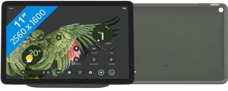 Je beschermt de achterkant en zijkanten van de Google Pixel Tablet 256GB Wifi Grijs met de Back Cover Grijs. Je zet de tablet met de hoes gemakkelijk op de oplaaddock met speaker. Door de speaker in de dock luister je naar muziek in hoge kwaliteit. Je Pixel Tablet is altijd opgeladen in de oplaaddock. Zo gebruik je ‘m elk moment van de dag. Met de Pixel Tablet bedien je gemakkelijk al je smart home apparaten. Je zet bijvoorbeeld je thermostaat hoger, zet je lampen aan of uit en ziet beelden van je slimme deurbel. Ligt je tablet niet in de buurt? Met Google Assistent bedien je jouw apparaten met je stem. Dankzij de ingebouwde camera aan de voor- en achterkant voer je videogesprekken met je familie, vrienden en collega’s. Je haalt de tablet gemakkelijk van de dock af. Zo neem je de tablet ook onderweg mee.