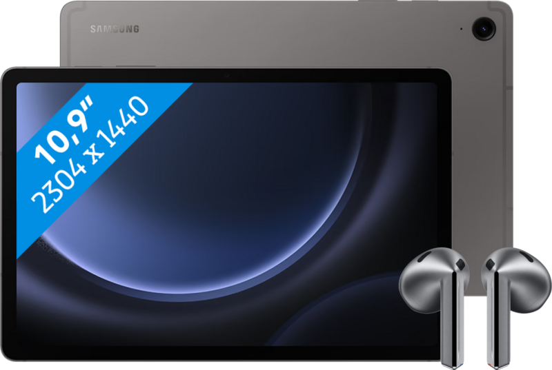 Luister via de Galaxy Buds3 naar je favoriete muziek en podcasts met de Samsung Galaxy Tab S9 FE 256GB Wifi Grijs. Dankzij ruisonderdrukking sluit jij je volledig af van achtergrondgeluiden. Op het middelgrote 10,9 inch scherm bekijk je comfortabel films of series. De tablet is waterdicht, dus je doet dit ook zonder zorgen in bad of naast het zwembad. De Tab S9 ‘Fan Edition’ heeft een helder en kleurrijk scherm. Zo bekijk je films en apps ook goed in het zonlicht. Met de meegeleverde S Pen Stylus maak je nauwkeurig notities en schetsen. Je bewaart ‘m magnetisch op de achterkant van de tablet. Tijdens het videobellen ben je scherp in beeld door de 12 megapixel camera aan de voorkant. Met 256GB hoef je het komende jaar je opslag niet op te ruimen. Sla je veel grote bestanden op? Breid het geheugen uit met een geheugenkaartje. Ga voor de Tab S9 FE met 5G en blijf overal met het internet verbonden.